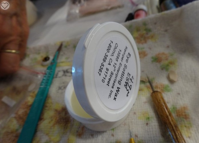 We will need the eyes you selected and eye setting wax. First, we outline the eye with the wax.